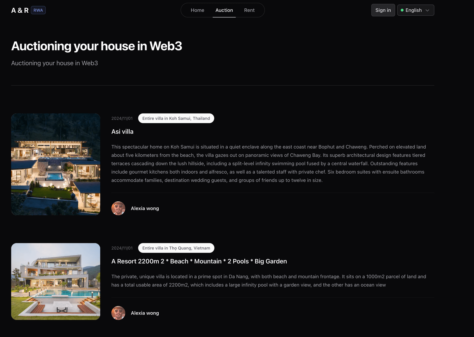 - v2 民宿拍卖租赁:在租赁基础上,增加拍卖功能